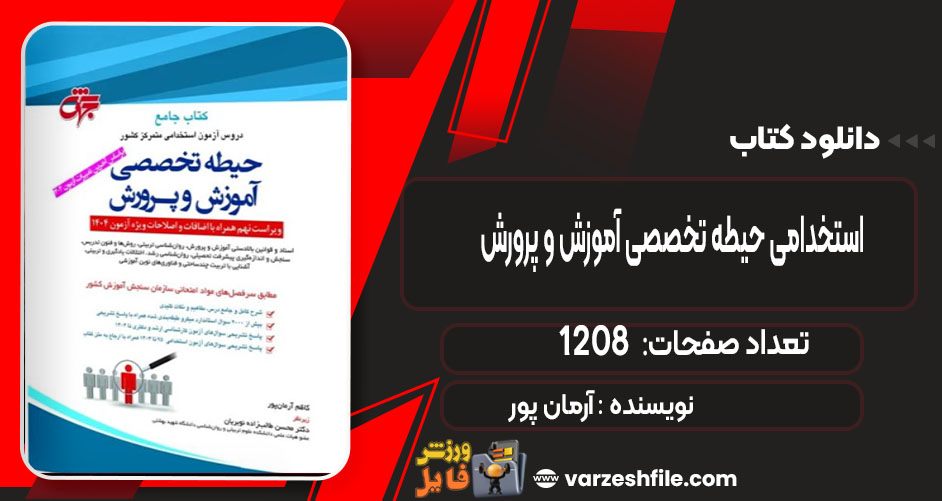 📕 وب سایت ورزش فایل کتاب استخدامی حیطه تخصصی آموزش و پرورش آرمان پور این کتاب به عنوان یک منبع جامع برای داوطلبان آزمونهای استخدامی در حوزه آموزش و پرورش طراحی شده است. این کتاب با ارائه مطالب آموزشی، نکات مهم و سوالات نمونه، به خوانندگان کمک میکند تا با مفاهیم و مباحث کلیدی در این حوزه آشنا شوند و آمادگی لازم را برای موفقیت در آزمونها کسب کنند. همچنین، آرمان پور با استفاده از روشهای تدریس مؤثر، به تسهیل یادگیری و بهبود عملکرد داوطلبان میپردازد .برای دانلود و بهرهبرداری از این منبع ارزشمند، با سایت ورزش فایل همراه باشید.